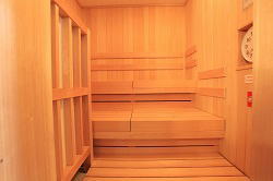 このホテルには大浴場がある。着替えて早速二階の大浴場へ。チェックインすぐなので先客は誰もいない。そう大きくもない湯舟だが一人貸切でサウナもついていいお風呂。 |