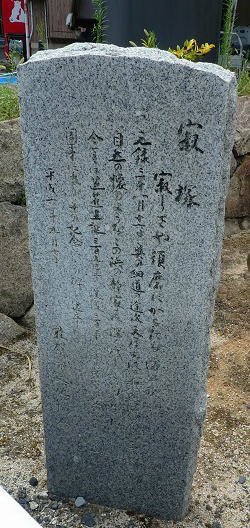 色ヶ浜バス停から坂道を下った集落の蛭子神社前を通って、本隆寺・開山堂境内に入る。奥の細道の48首目の句・ 寂しさや 須磨に勝ちたる 浜の秋、の句碑が建つ。 |