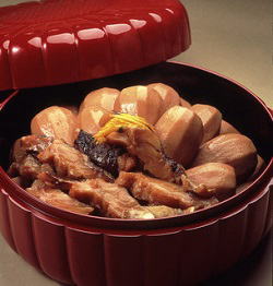 ![]() 「いもぼう」 京都の伝統野菜"海老芋"と "ぼうたら(鱈)"を一緒に炊上る |