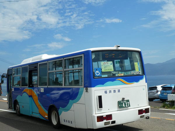 色ヶ浜バス停から11:04分の(夏季臨時バス)コミュニティバスに乗って敦賀駅に戻る。 |