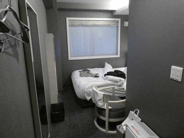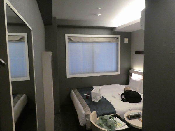 事前に研究していたにもかかわらず、早速梅田地下街で迷ってしまう。10時間も電車で移動して疲れていたので、とにかく僅か700㍍のホテルへの道をスマホナビで案内させ やっと16時前ホテルに到着チェックイン。部屋は515号室 |