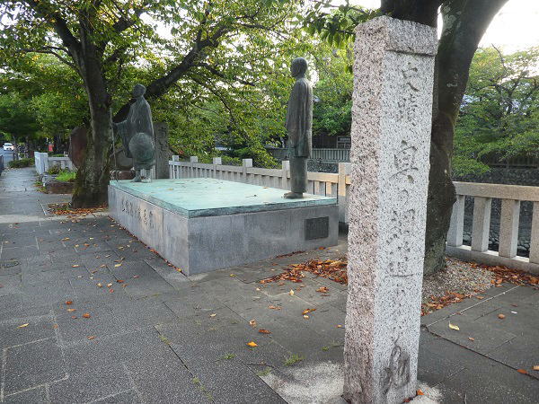 奥の細道結びの地の、船町湊は水門川の川湊で、慶長年間(1596-1615年)から整備が始まり水運が発達した場所で、芭蕉が「奥の細道」の旅を終え、伊勢に向かって船出をした場所だ。付近には標識として、江戸時代後半に建てられた住吉燈台が残っている。 |