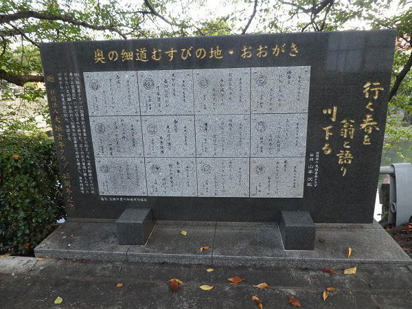 『奥の細道』で詠まれた句碑を市内を流れる水門川沿いの「四季の路」に設置し、「ミニ奥の細道」として整備されている。 |