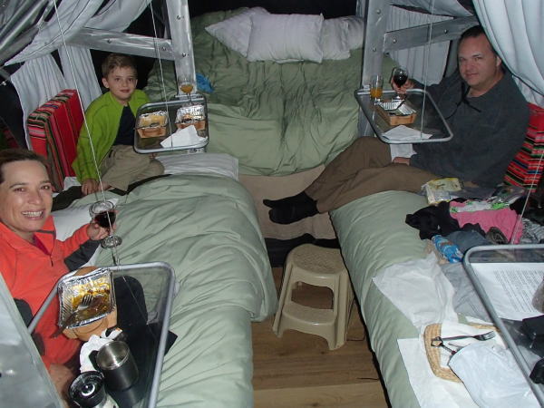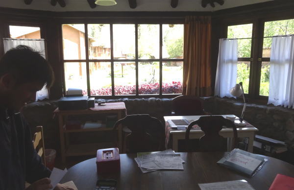 部屋はロッジ風のオシャレな建物の2階。広くて清潔なトリプルルーム。シャワーだがお風呂に交代で入る。30時間以上の長旅の後でやっと一息つけた。 |