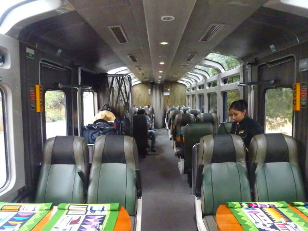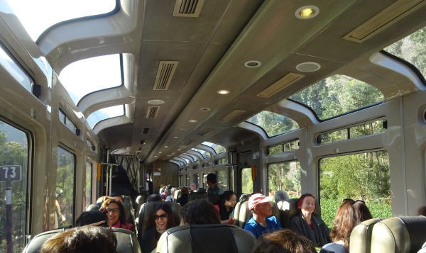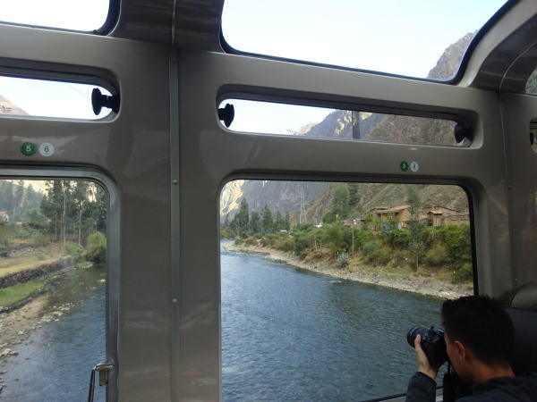 途中のオリャンタイタンボ駅に停車、日本からのツアーはほとんど全てこの駅から乗車するのだ。ぞくぞくとたくさんの人であっというまに満席になり、うちのテーブルにはブラジルからの一人旅の女性が相席になる。その方は日本にも6か月仕事で滞在経験があり懐かしそうに片言日本語で昔話をされた。