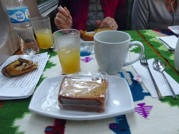 列車内で飲み物とスナックのサービスがある。メニューにあの麻薬のコカインの葉のコカ茶がある。ペルーでは日常的に茶として飲まれていて、高山病予防として効果があるらしいので頼んでみる。