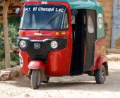 バスを降りてホテルに向かって歩くが道に迷い途中からモトタクシー(3輪タクシー)を拾ってホテルに到着。5ソル(160円) |