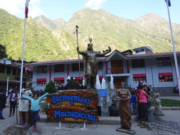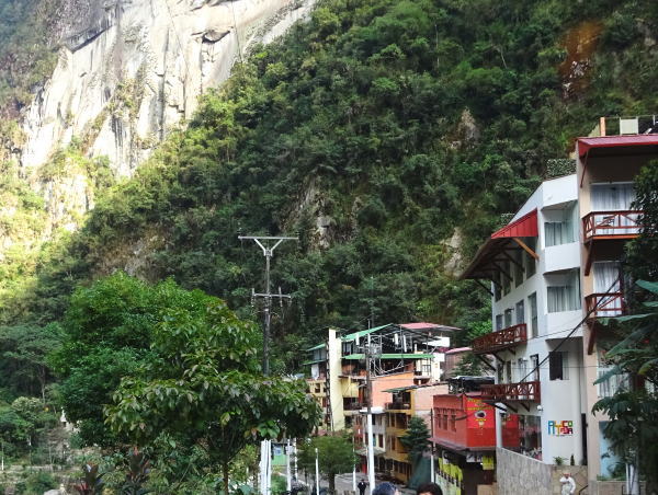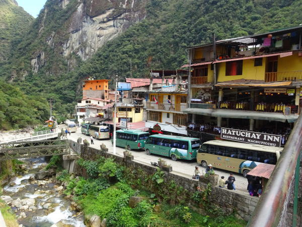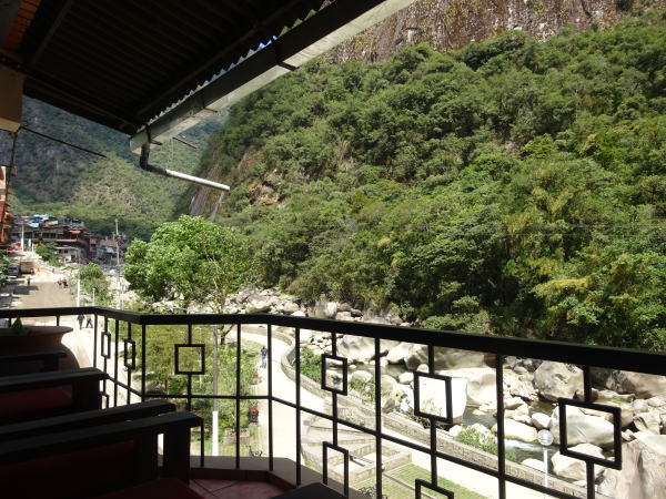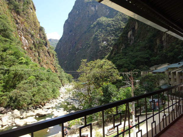 マチュピチュ村の中心のアルマス広場。マチュピチュから帰って、ホテルPanorama B&Bにチェックイン。渓谷前でダイナミックな景観。マチュピチュ行のバスはホテル前の通りを通っていく。