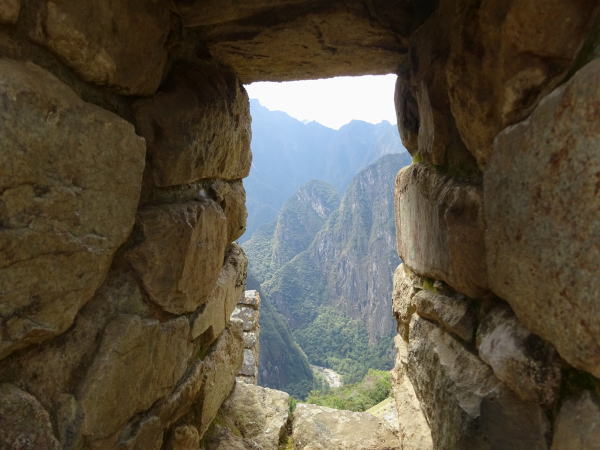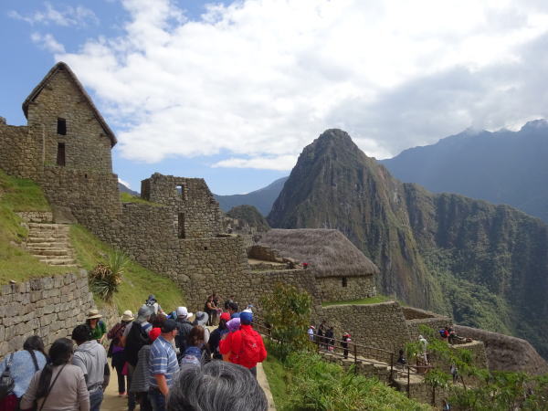 急峻な未舗装のS字の山道を右に左に揺られながら30分ほどで遺跡入口に着く。入場口でインターネットで購入した入場券とパスポートのチェックを受ける。世界遺産で一番人気の高いマチュピチュにしては質素な入口。