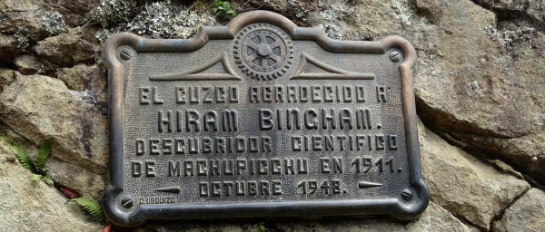 マチュピチュ遺跡の発見者、ハイラム・ビンガムのプレートを見ながら20分程登る。