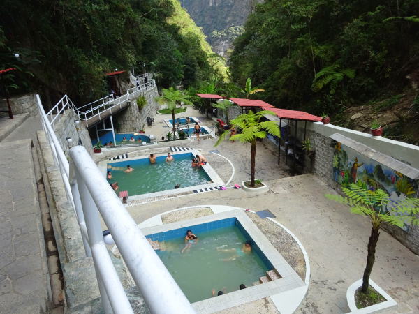 マチュピチュ村の旧名はアグアス・カリエンテスでスペイン語で『熱い水』名前の通り村のはずれに温泉が湧いている。ホテルから街の中心を突き抜けて10分位。