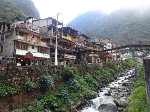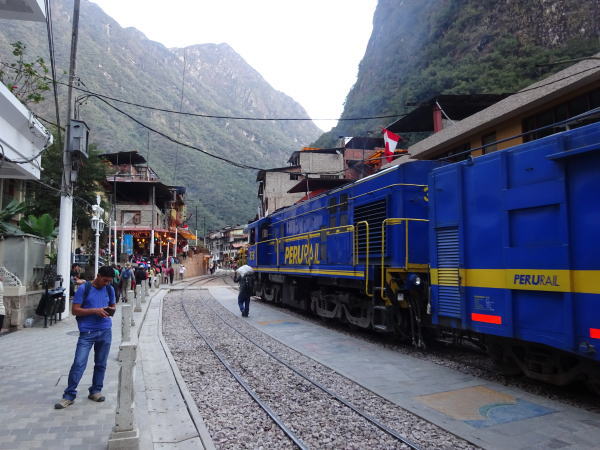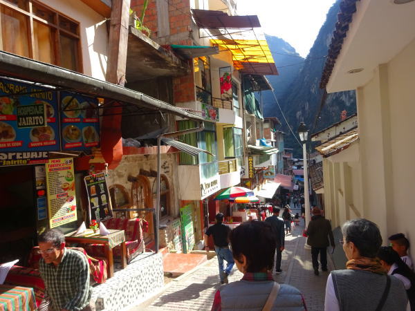 2時間半、ビスタードーム号はマチュピチュ駅に到着。改札を出ると土産物店の並ぶ細い路地を抜けると渓谷のマチュピチュ村が目の前に開けてくる。