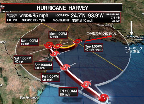 (分類上から2番目に強い「カテゴリー4」の勢力 ハリケーン・ハービーのニュース報道)
