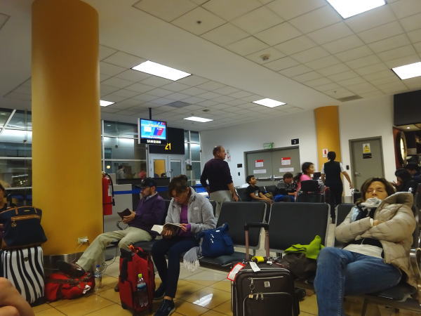 クスコ空港~リマ空港着までは順調に来てマックで腹ごしらえもして搭乗ゲートに行く。しかしAA988便ダラス行が遅延の表示、相当遅れそう。大型ハリケーンの影響だろう、どのくらい遅れるのか皆目検討もつかないが待つしかない。