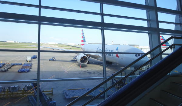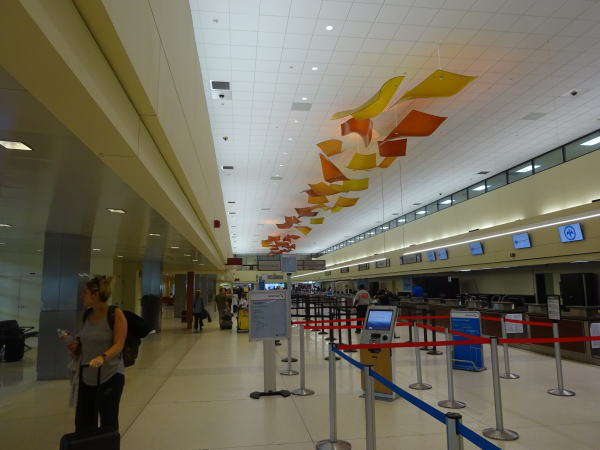 やっと手荷物検査を無罪放免され税関を抜けて、出航時間に遅れが出る場合もあるのでモノレール・エアリンクに乗り、ニューオリンズ行のCゲートに向かう。しかしCゲートに着いた時はすでに飛行機は離陸していて万事休す。アメリカン航空の係員に事情を話すとAAサービスカウンターに行くよう指示され、急いでサービスカウンターへ。そこで昨夜からの遅延と手荷物検査に時間を費やし乗り遅れた旨話すと、次の2時間後の便に振り替えてくれる!嬉しいー助かったー。