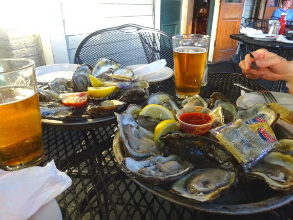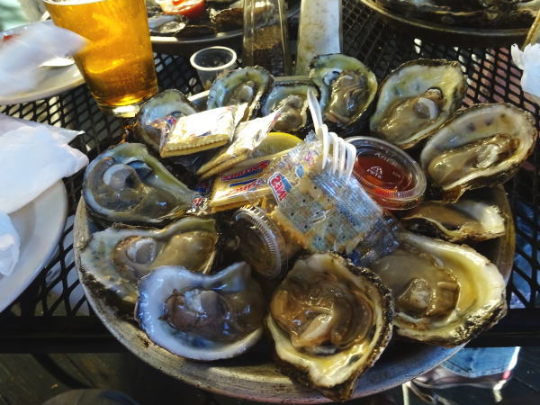 16:00~20:00時ハッピーアワーでは牡蠣が1個0.25㌦、1皿12個でたったの3㌦、ただし一緒に飲み物を頼まないといけないので、ビールを注文5.25㌦、合計で8.25㌦。信じられない安さ。