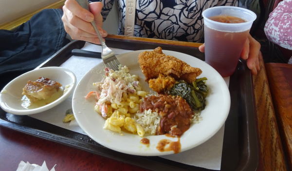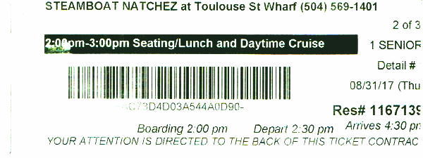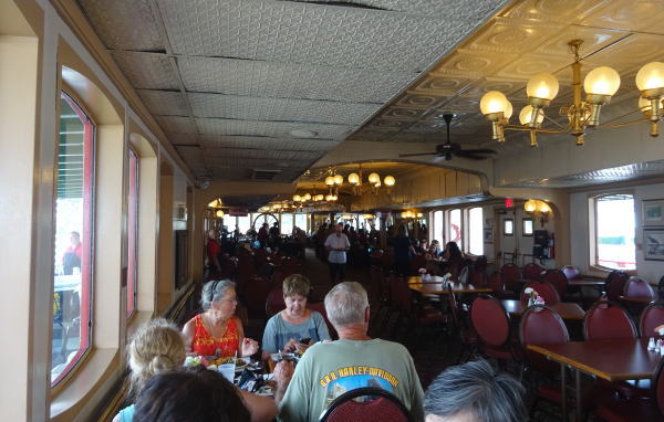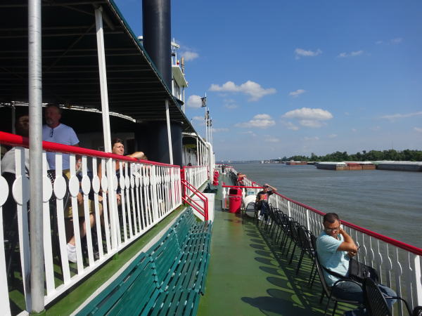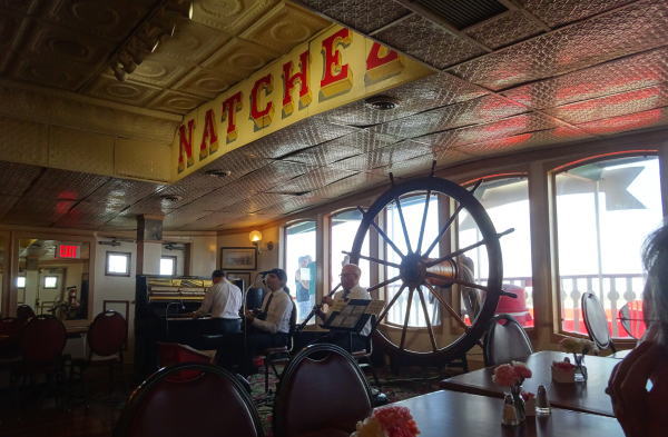 2時に乗船して、食事中の2時半になると出航の合図ととも静かに動き、ゆっくりミシシッピ川を上り始める。食事を続けしばらくして、デザートやお茶をしながらクルーズが楽しめる。