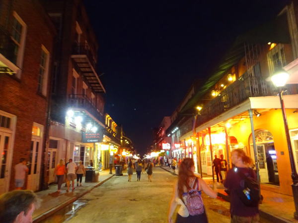 ニューオリンズ・フレンチクウォーターのバーボンストリートを歩く。3老人は少し街に溶け込めない感じ。ジャズの路上ライブなどもっと聞きたかったのだが目だったパフォーマーがいなかった。