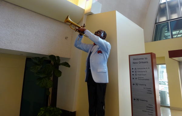 空港名は正確には「ルイ・アームストロング・ニューオーリンズ国際空港 」と長い。