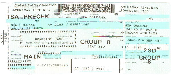 AA2306便:ニューオリンズ空港発13:45~15:22ダラス空港着予定。