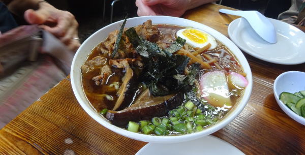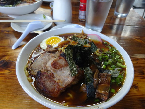 初めに味噌汁がでてくる、ラーメン頼んで味噌汁とはこれがアメリカ式。