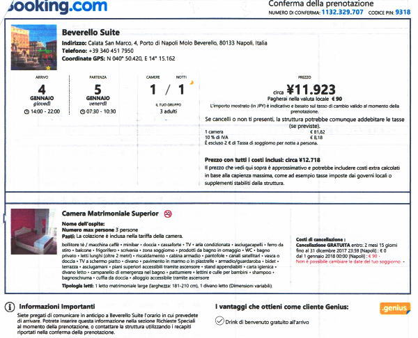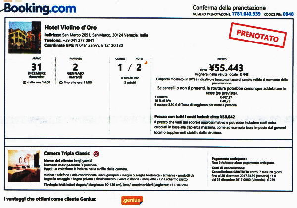 ヴェネチアHotel 2017年12月31日~2泊 3人用 |