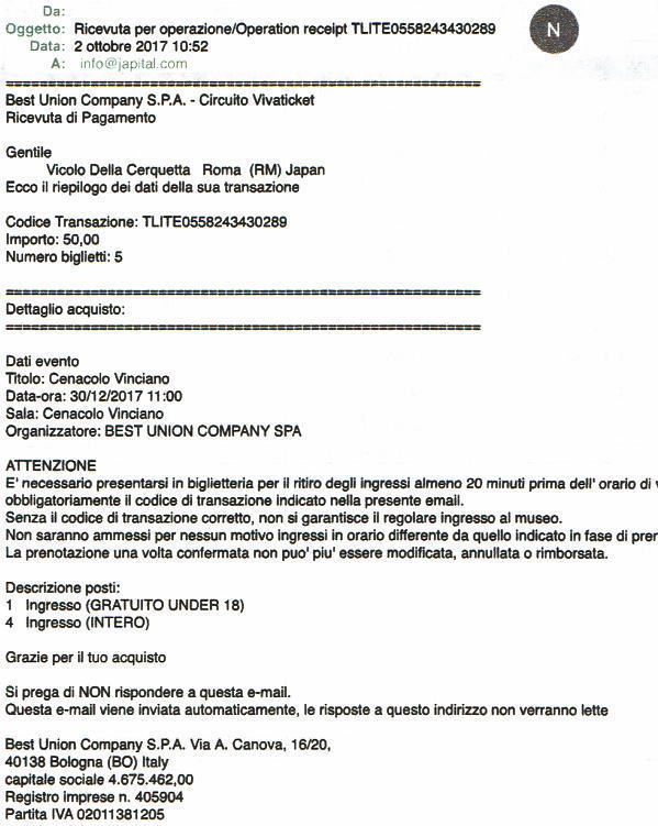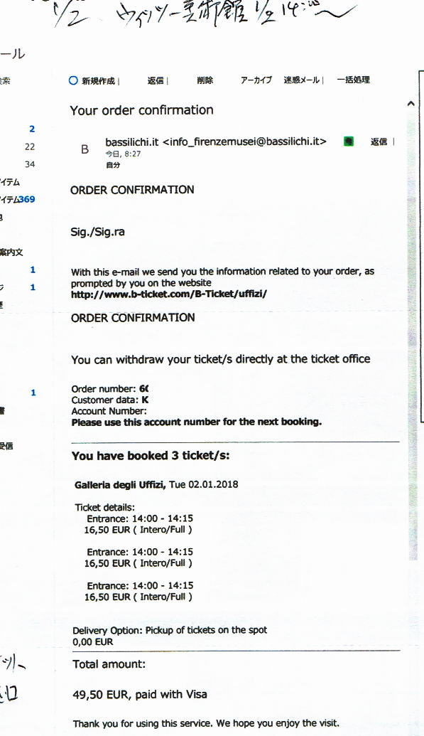 1月2日 フィレンツェ/ウィッツィー美術館予約券 |
