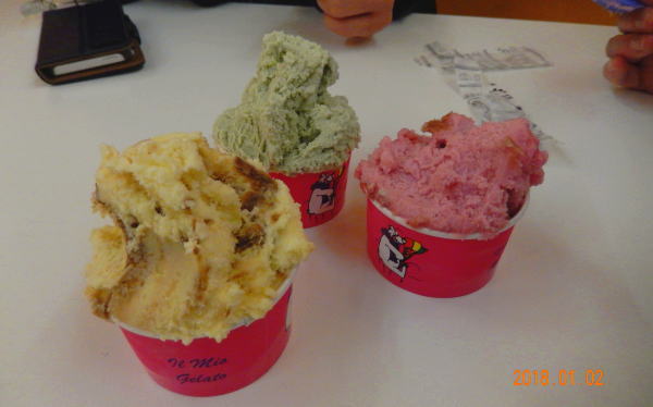 | 大聖堂からアルノ川方面に下り、シニョリーア広場脇のカフェへ。 ジェラート食べて休憩。イタリアのジェラートはどこも美味しい。 |