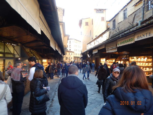 | ウィッツィー美術館前からアルノ川にかかる、名所ヴェッキオ橋の露店を眺めながら対岸へ。 | ||||||||||||||||||||||||||