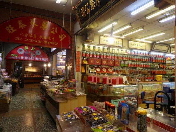 迪化街は乾物やカラスミ、漢方薬、ハーブティーなど19世紀中頃の清朝末期、貿易や船荷を扱う商店が街を形成し始め,城隍廟が建立された時期、日本統治時代に茶葉が台湾の特産品となり、その積出港となっていた街。 |