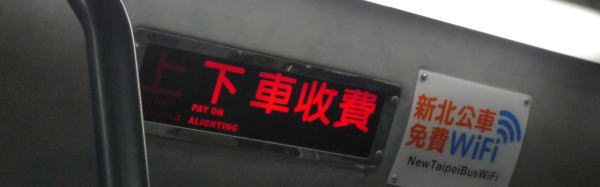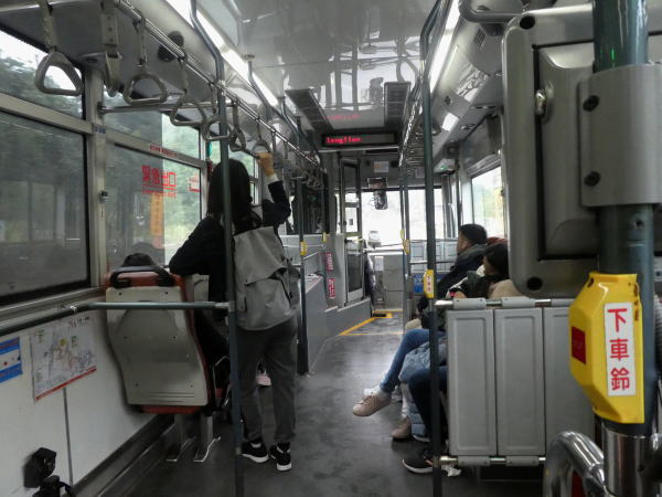 運賃はもちろん悠々カード支払い。上車収費=乗るときカードをタッチして支払い。途中まではこの表示だったが、30分くらい運行してから 下車収費=下車する時タッチ に表示が変わった。短い距離のうちは乗るときタッチで降りるときはそのまま降りて、長い距離だと乗る時と下車時にタッチするシステム。 |