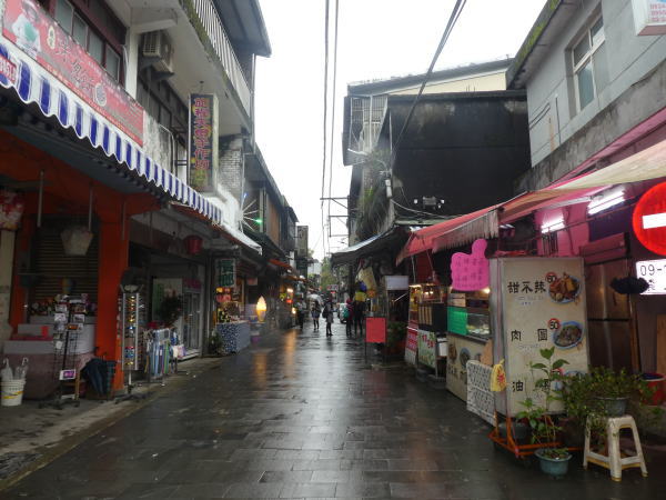 滝から10分くらい小雨の中を歩いて老街に入る。 |