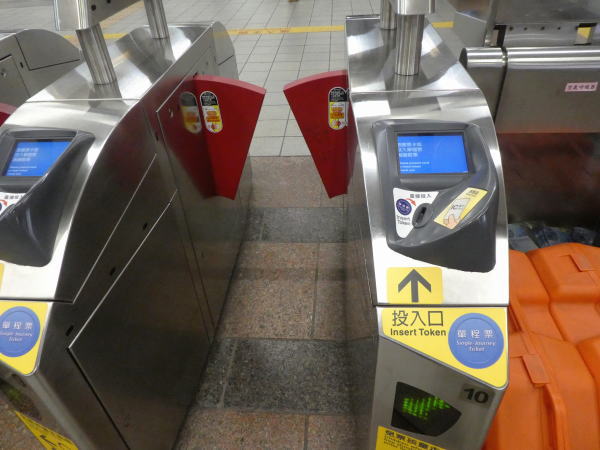駅の自動改札機に悠遊カードをタッチして入るのは日本と同じシステム |