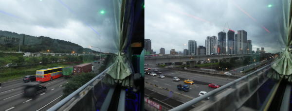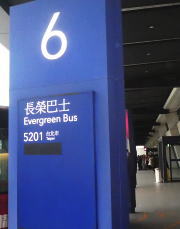 シャトルバス乗り場は到着ロビーから出たところにある。 予約しているエバーグリーンホテル前を通過する長栄バス 5201番を待つ。20分ほどでバスが到着。早速悠遊カードを運転席横のカード読み取り機にかざして乗車する。 |
