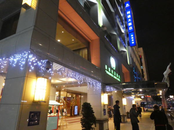 バスは空港から1時間ほどかかって台北市内、長安東路二段バス停に到着。下車すると目の前が台北の宿泊ホテル「EvergreenLaurel Hotel(長栄桂冠酒店)」 17時少し前にチェックイン。 |