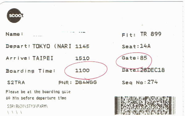 2018年12月28日 LCCのSCOOT航空TR899便、成田空港第二ターミナルから台北/桃園空港へ。 |