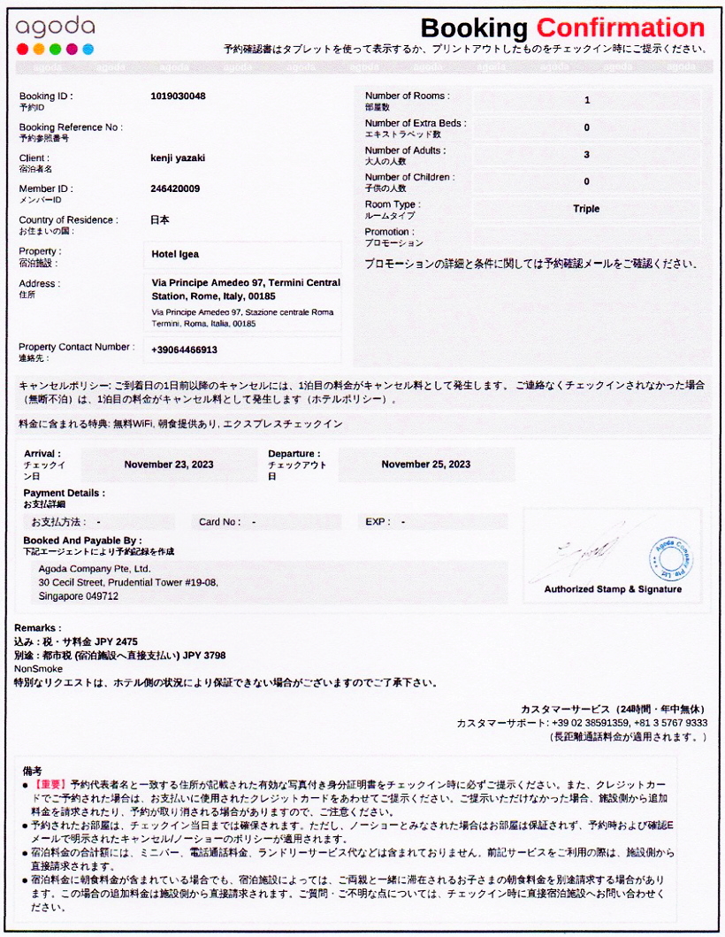 予約表/ローマ |