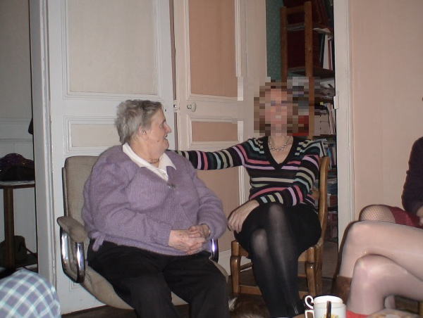 | テーブルについてアグネスと妹さん手料理の食事が始まる。シャンパン・ワイン・チーズ・パン・果物各種・鹿肉ステーキ・フォアグラ・デザート... 3時間ほどゆっくり、賑やかに、喋り・食べ・飲んで過ごす。 食後はみんなで散歩にでる。愛犬のゴーストもすっかり慣れて可愛い。帰って又リビングで紅茶&ケーキ&クッキー食べながら エマ君子供時代のアルバムを見せてもらったり家の中を案内してもらったり。 |