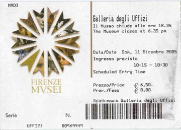 ブルネルツキホテルはフィレンツエのメーンストリート直ぐ裏のいいロケーション。 12:50チェックイン312号室 ユーテルで予約スイートルームで通常一泊360ユーロだがキャンペーンで3泊390ユーロ、ユーテルはやはりいい。 趣のある部屋、案内のボーイへのチップもだいぶ自然になって来た。期待してなかったホテルだったのでいい予想はずれ。 着替えて街に出る。ウィッツィ美術館〜ベッキオ橋右折ミッソーニの店でMマフラー購入(85ユーロ)又石の橋渡りフェラガモ本店から右折ホテルに戻り孫に絵葉書書く。 窓からは真下に通りのイルミネーション深夜まで人の波で賑やか。 |