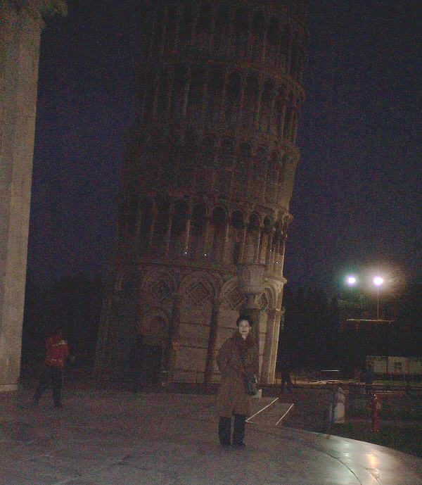 駅に戻りエンポリで乗り換えピサ15:42着日が暮れそうなので急いで斜塔へ歩くピサの市内はやはり人の波をかき分け ながら日没ぎりぎりに斜塔着この時間では本当の斜塔の雄大さが感じられず、少し残念。 クリスマスイルミネーションの中ゆっくりピサの街を歩く。 18:00頃30〜40分位遅れた前の時間の電車が来たのでそれに乗り19:00頃フィレンツエに帰る。 ウィンドーショッピングしながら途中ピザ店でテイクアウトして買い置きのワイン飲みホテルで食べる。 |