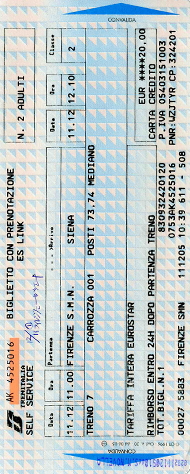 ![]() ミラノ〜フィレンツェチケット予約票(インターネット予約) |