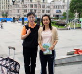 ![]() 紹興駅前で電話のかけ方を 教わった地元の学生さん |