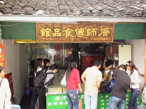 見学をすませ元の道を辿ってホテルにむかう。 帰り道、沢山の客で賑わうお菓子屋さんに入ってよく売れていそうなお菓子を買う。 ふわふわの中華風ケーキとお米のクッキーだった。 |