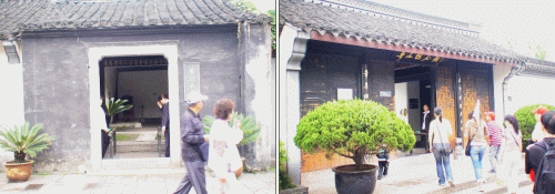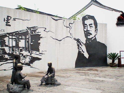 紹興の街は運河沿いの道や昔ながらの中国の香りのする裏通り、現代風のショップもある繁華街などを歩きながら、何回も道を尋ねながら、やっと魯迅の生家の通りに出る。 |