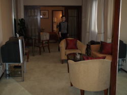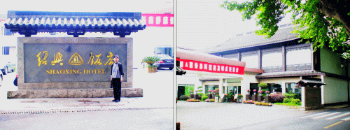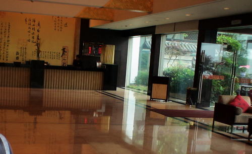 大通りから細い路地に入り15分ほででホテル裏門に無事到着する、約束の10元とチップ3元、13元渡すとすごく喜んでくれた。運転手さんが好感もてたので明日朝10:00紹興駅へ迎えに来て乗せて行ってくれるようジェスチャー交じりで約束する。 紹興飯店裏口から(輪タクは表門には出入りしてはいけないようだ)中庭を通ってレセプションカウンターでチェックイン。中国のホテルはここもすごく綺麗でびっくりだ。 3210号室は洗面所も2箇所もある広い部屋。 |