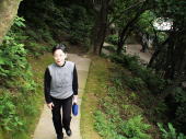 日曜日早朝にもかかわらず、山道やところどころの広場にはバトミントンや太極拳などする人が溢れている。 |
