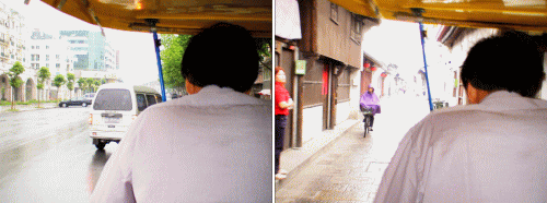 輪タクでホテルへ |