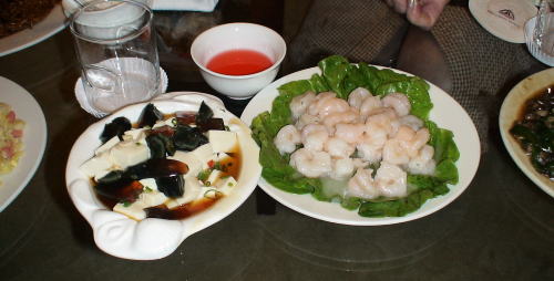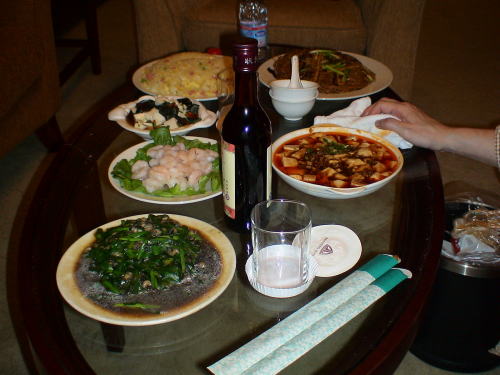 しばらくしてワゴンに載せた料理が部屋に運ばれてくる。量の多いのにびっくり。 さすが本場物の紹興酒が美味しかった。 |