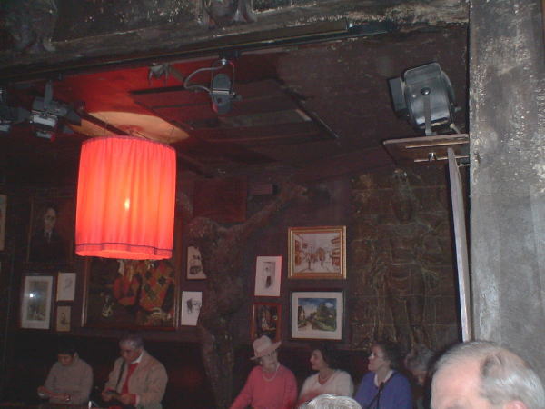 楽しい食事を終え地下鉄で12号線LamarckCaulaincourtへ。 モンマルトルの坂道を上がり数分でシャンソニエ・ラパンアジルに着く。 開場は21:30表で少し待つ。先に待っておられたオランダから旅行中今夜だけパリに来たというご年配の日本人ご夫婦と話す。間もなく中に入り案内された席に4人並んで座る。薄暗い照明、壁には古いポスターや飾りつけ、想像通りの雰囲気、客が皆座り終えた頃歌い手数人が中央の空きテーブルに腰掛けると同時にピアノ伴奏で歌い始める。懐かしい曲、初めて聞く曲、客も一緒に歌う曲など歌い手も代わる代わる唄い続ける。深夜2時頃まで続くようだが充分堪能し23:30休憩時間に帰ることにする。ホテルまで送るというが固く断り明日ルーブル美術館のピラミッドで会う約束をして地下鉄オペラで別れる。モンパルナスBienvenue駅からホテルへはクリスマスの夜人通りもなく周りに気を配りながら帰る。 |