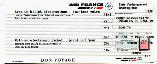 2007.12.23(日) 晴れ スペイン・バルセロナ空港からフランス・パリへ 20日あまりのスペイン旅行最後の夜はなかなか寝付けない。 AM4:30日本のAiに電話すると、フランスに来る予定を来月10日頃から上海へ中国語短期講習へ変更したと話していた。 AM6:20チェックアウト 夜明け前で真っ暗の中バルセロナ・サンツ駅へ。 券売機で空港まで2人分5ユーロ買ってインフォメーションで乗り場を確認すると切符売り場の窓口に案内される、窓口では切符を見せるように言い切符と引換えに2.5ユーロ返してくる。インフォメーションの人はそのまま9番ホームへ行くよう言われるが良く意味が解らない。 言われるまま出入り自由の改札口を入りそこにいた青年に事情を身振り手振りで伝えるとニコニコ笑って又切符売場窓口で聞いてくれそのまま列車に乗るよう下のホームまで案内してくれ、空港行きの電車に乗るのを見届け手を振って送ってくれる。本当に親切な青年だ。 7:20バルセロナ空港着 チェックインしばらく待ち44搭乗口から9:30発パリ行きAF機に搭乗 11:20パリ・CDG空港着。 |